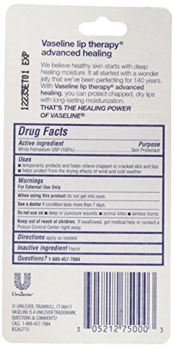 -. Feature : Pack of 24, 0.35-ounce tubes of Vaseline lip therapy-advanced formula / Protects dry, chapped lips / Provides long lasting moisturization
