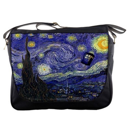 -. Brand : QC Messenger Bag -. Color : Black -. Department : mens -. EAN : 0013658128101 -. Feature : Measures 14"L x 4.8"W x 12"H inches, adjustable 1.5" width nylon shoulder strap (27" min. - 52.5" max.) / Made of black nylon. / Single zippered top inside closure, velcro outside closure. / It can fit 2 packs of A4 paper easily (500 sheets per pack). / 2 internal pockets, image imprinted using dye sublimation process to ensure everlasting effect. -. IsAutographed : 0 -. IsMemorabilia : 0 -. Label : Quinn Cafe -. Manufacturer : Quinn Cafe -. PackageQuantity : 1 -. ProductGroup : Sports -. ProductTypeName : OUTDOOR_RECREATION_PRODUCT -. Publisher : Quinn Cafe -. Size : 14 -. Studio : Quinn Cafe -. Title : Doctor WHO Tardis Police Call Box Starry Night Van Gogh Messenger Shoulder Bag -. UPC : 013658128101