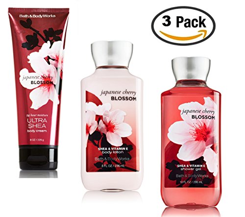 -. Feature : Japanese Cherry Blossom Bath and Body Works Gift Set - from the best selling signature collection / America's #1 Fragrance - Japanese Cherry Blossom evokes the beauty of the exotic gardens of Japan with a graceful, award-winning blend of pear, Japanese Cherry Blossom & sandalwood. / You receive THREE (3) items in all - one Ultra Shea Triple Moisture Cream (8 oz), one Body Lotion (8 oz) and one Shower Gel (10 oz) -- $38 Retail Value! / Wash your way to softer, cleaner skin with a rich, bubbly lather and follow up with America's #1 body lotion -fortified with nutrient-rich ingredients like protective Vitamin E and conditioning Vitamin B5 for 16 hours of continuous moisture. / At night, use the Ultra Shea Triple Moisture Cream with soothing Aloe Butter, pampering Cocoa Butter and more Shea than ever before -- this non-greasy formula melts into skin to provide beautiful fragrance and all day, all night hydration.