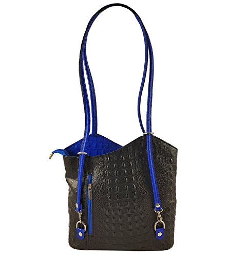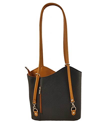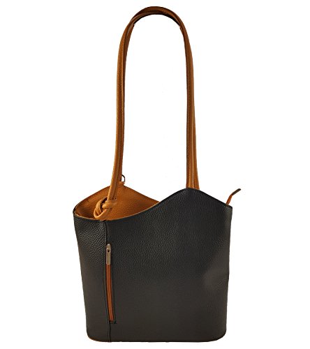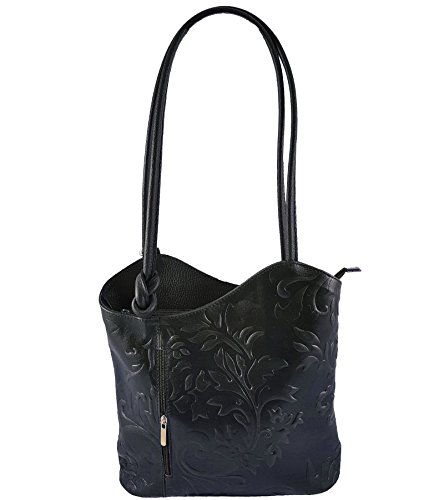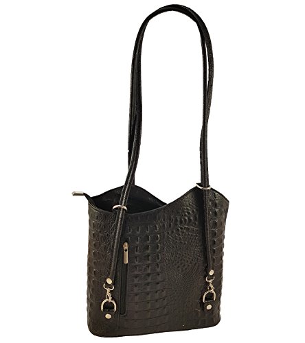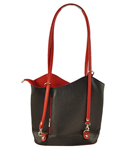 FreyFashion - Made in Italy 2 in 1 Handtasche Rucksack Designer Luxus Henkeltasche aus Echtleder in versch. Designs