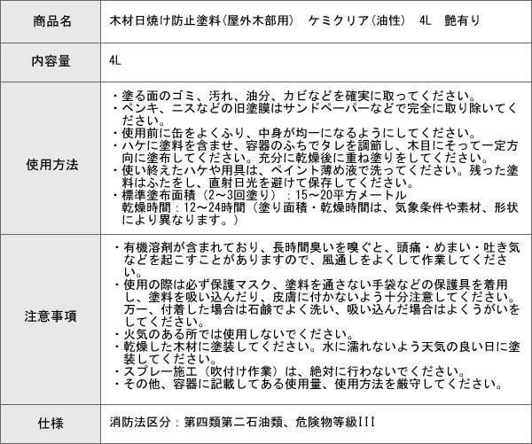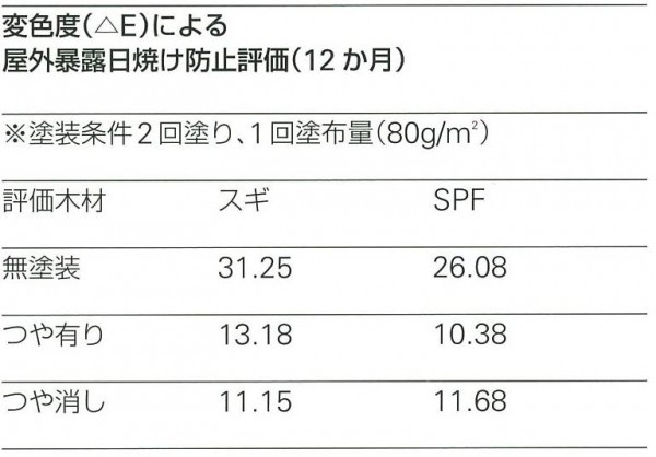 高性能紫外線吸収剤およびHALS配合により高い日焼け防止効果が得られます。着色顔料を一切使用せず、完全クリアタイプを実現。木材の風合いと美しさの維持に最適な油性木材保護塗料です。塗料の高粘度化により、浸透性の異なる多種の木材に対応しています。 |
