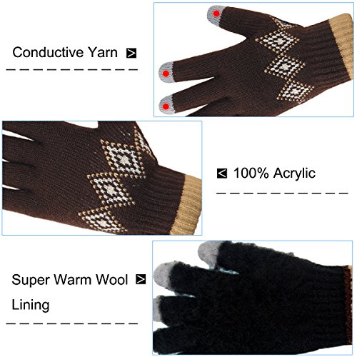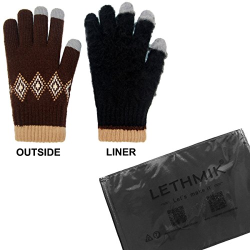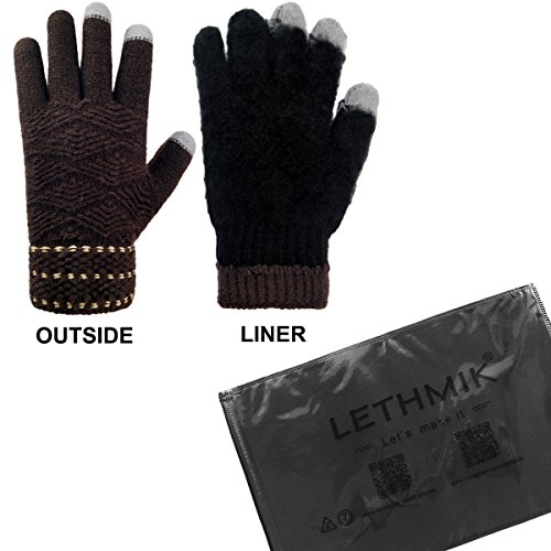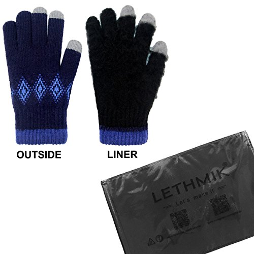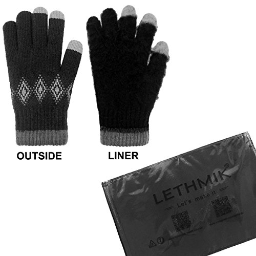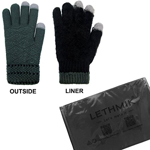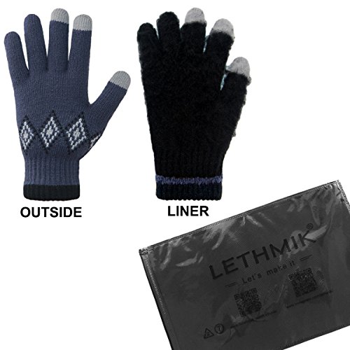 Binding : Apparel Product Description LETHMIK Kint Gloves. LETHMIK Touch Screen Knit Gloves Mens Winter Texting Gloves with Warm Wool Lining; this gloves is made of High Quality Acrylic Material with super soft and warm Wool lined, The solid color and rhombic Knitted, Build a simple and stylish Knit Construction style, the Unique and Practical 3 Touchscreen Fingers Capability design, very Convenient and Great for Texting/Typing/Writing in cold winter; Comfortable and high quality gloves material with excellent elasticity, Stretches to fit most hands, You can easily get a custom fit according to your hands. Pair off with your favorite Outfit. It's an excellent choice for Gifts or Your Own Dressing. Buy more for your friends and family. Please check genuine authentic item tag to avoid counterfeit products.Counterfeiters are capable of copying the appearance of lethmik items but there're no "LETHMIK" tags and our packing. Product Care Instructions:Do not wash by hot water; Do not chlorine bleaching; Hang dry in shade; Do not iron; Hand Wash or Spot clean recommended! Please Try Not to Machine Wash or Brush Wash (In order to avoid Pilling). Our customer service Email address is: customerservice@lethmik.com ; You can feel free to contact us if you would have any questions, and we will try our best to bring you with the best services. 0