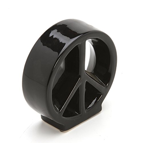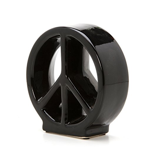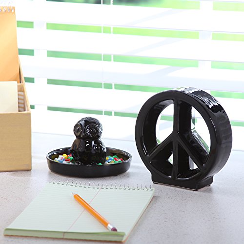 Hosley 5.5" Black Ceramic Peace Sign / Table Top, Ideal Gift for Wedding, Spa, Meditation, Reiki, Dorm P9