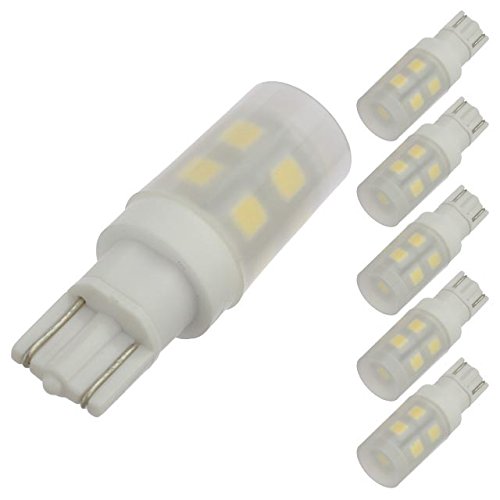 LEDwholesalers T10 Wedge Base Omnidirectional 1.5-Watt LED Light Bulb with Translucent Cover 12V AC/DC ETL-Listed (6-Pack), Warm White 3000K, 14606WWx6