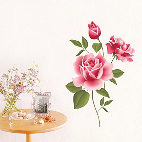 Lifelike Noble Rose Flowers Wall Stickers DIY Mural Art Decal Self Adhesive Removable PVC Wallpaper Decor,Pink,19.7 inch*27.6 inch Original