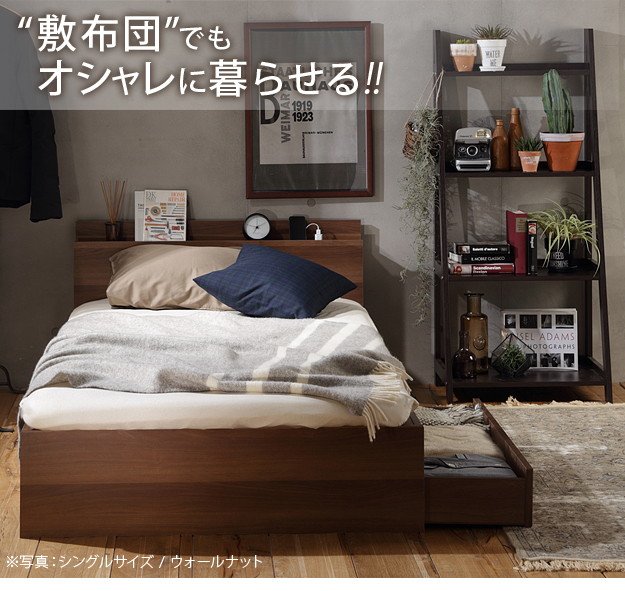 ●ロースタイル 省スペース スリムヘッドボード 収納 引き出し コンセント 敷布団 敷きふとん 抗菌防臭布団 防ダニ布団 防ダニ加工 吸汗速乾 軽量 軽い 厚い