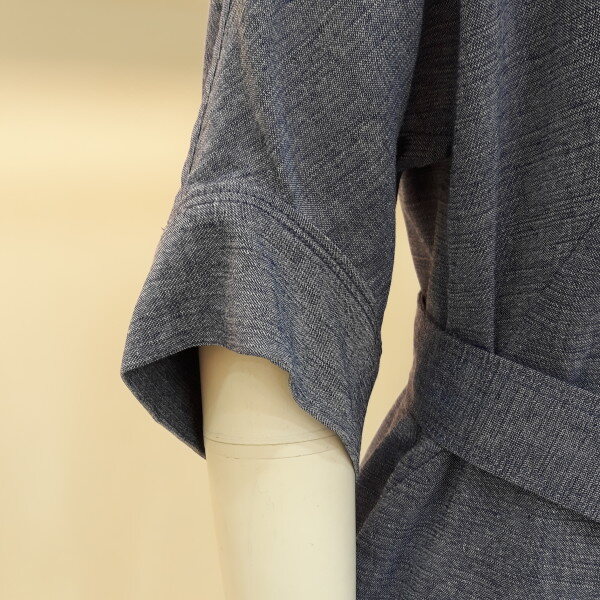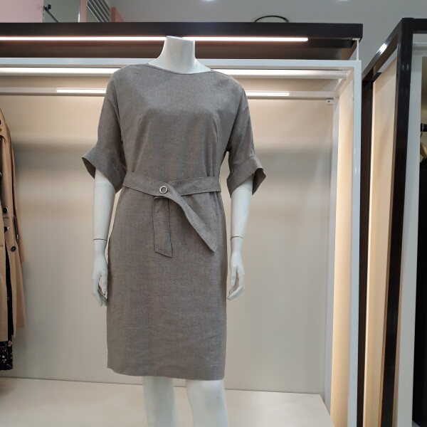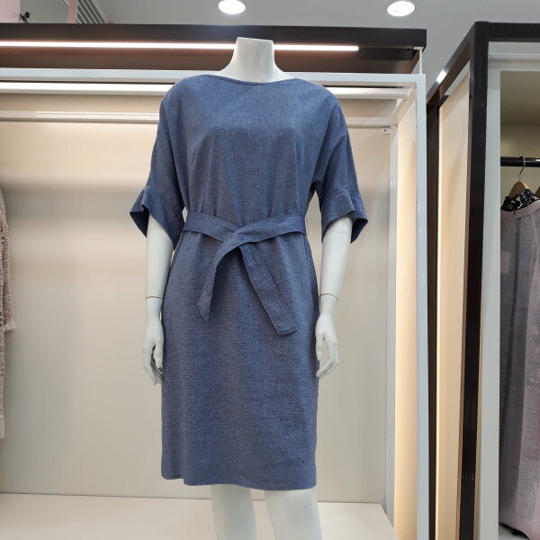 멜란 느낌 소재의 박시한 원피스 벨트로 멋스럽게 연출