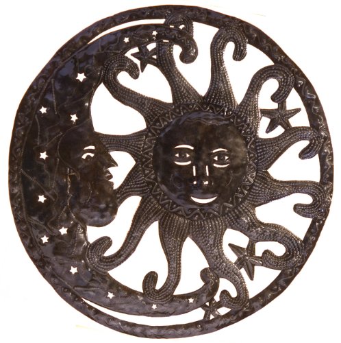 Le Primitif Galleries Haitian Recycled Steel Oil Drum Outdoor Decor, 33 by 33-Inch, Sun Moon