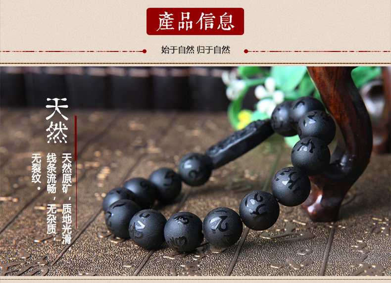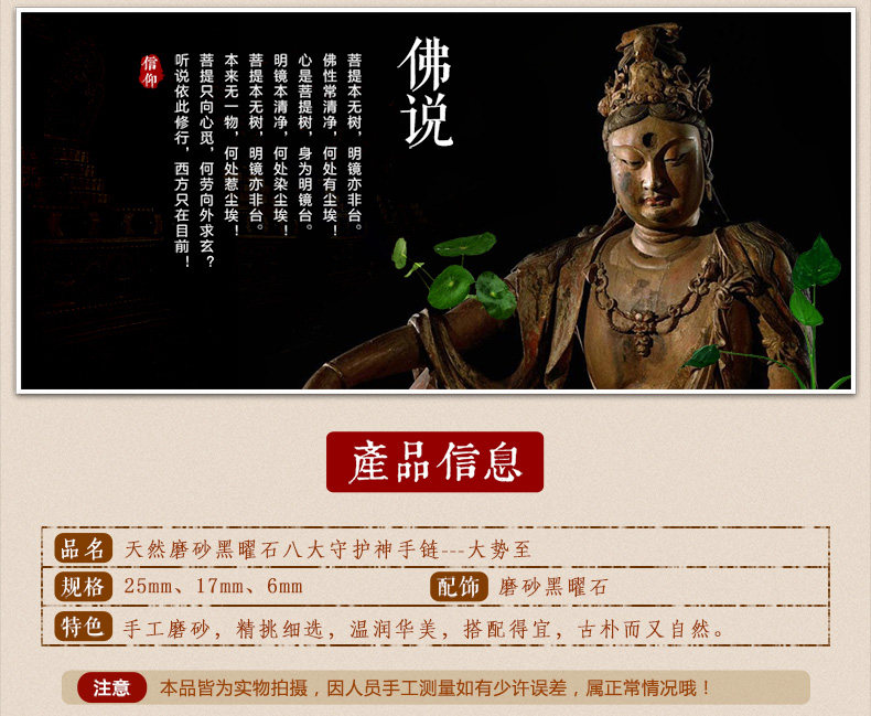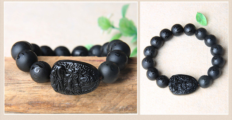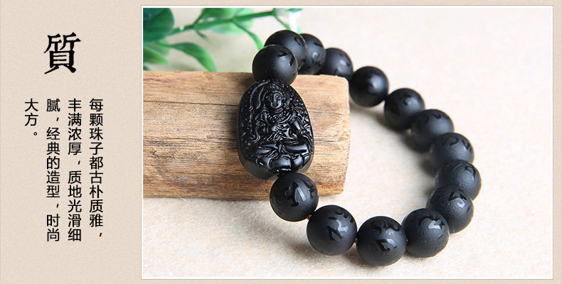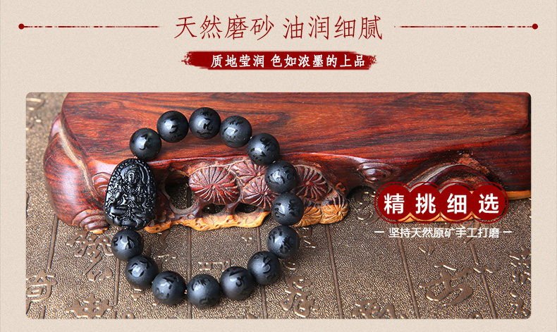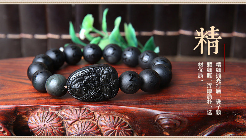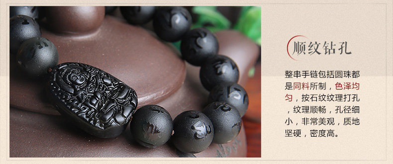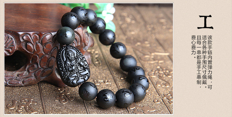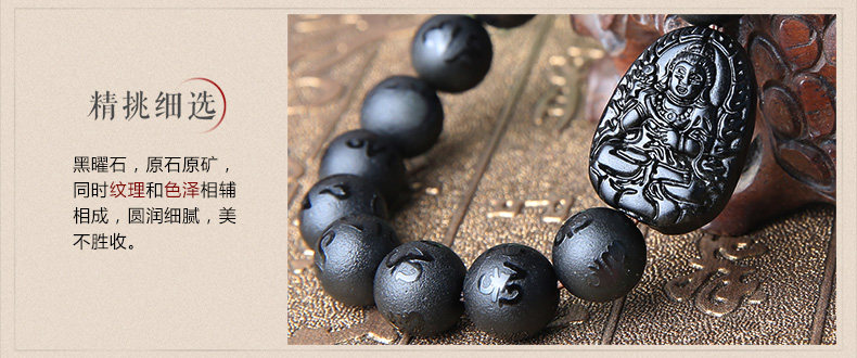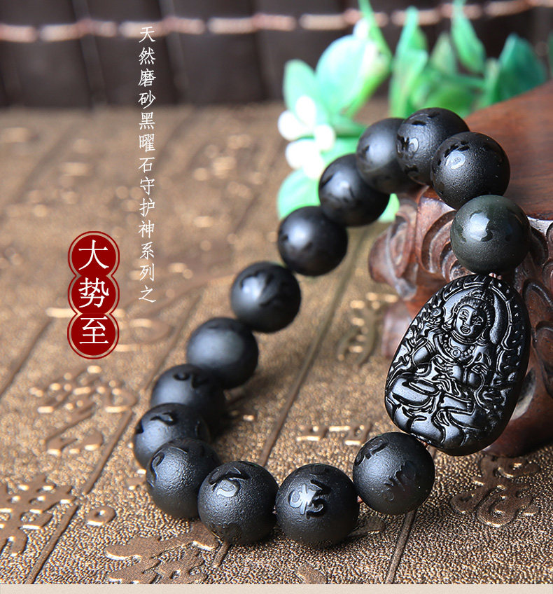 开光黑曜石大势至菩萨属马手链本命佛六字真言男女款属生肖马