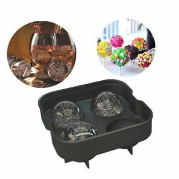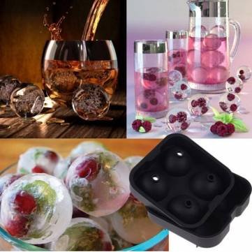 Four Holes Silicone Whiskey Ice Hockey Mold Ice Cube Tray With Lid
