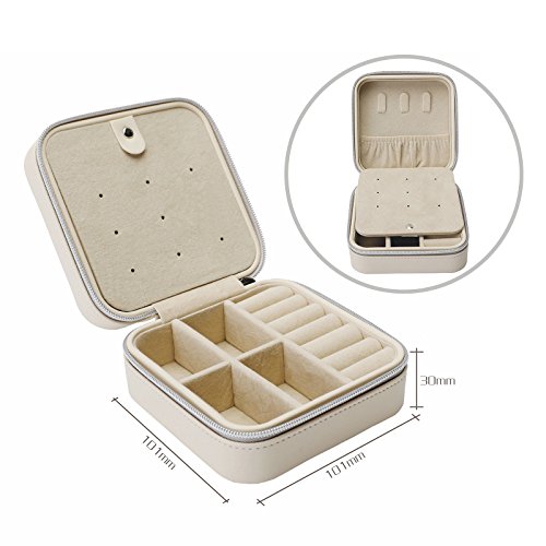 -. Feature : ★Portable and Light: same size to a coin,10 * 10 * 5cm,easy carry for travel. / ★PU Material: Deluxe synthetic leather exterior(not genuine leather but premium synthetic PU leather)+Velvet lining+High Quality flannel interior / ★Large capacity storage: perforated earrings, bracelets, hairpins, earrings, necklaces, rings, perforated earrings, bracelets, brooches and other jewelry collection. Note: jewelry, jewelry and other accessories are not included. / ★Elegant Outlook: Simple and compact design with elegant outlook and could be used to storage collective. / ★Best Gift Choice: Fashion, comfortable, white Valentine's Day, birthday, Mother's Day, Christmas and other gifts, she is most suitable for mother, wife, daughter, classmates, lovers, friends, the best gift