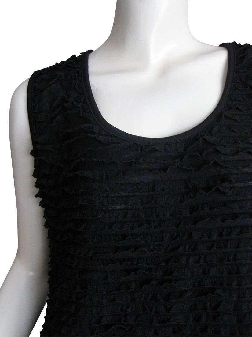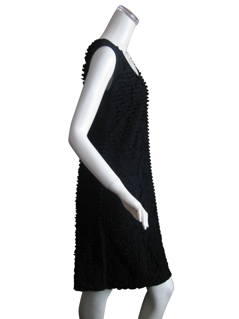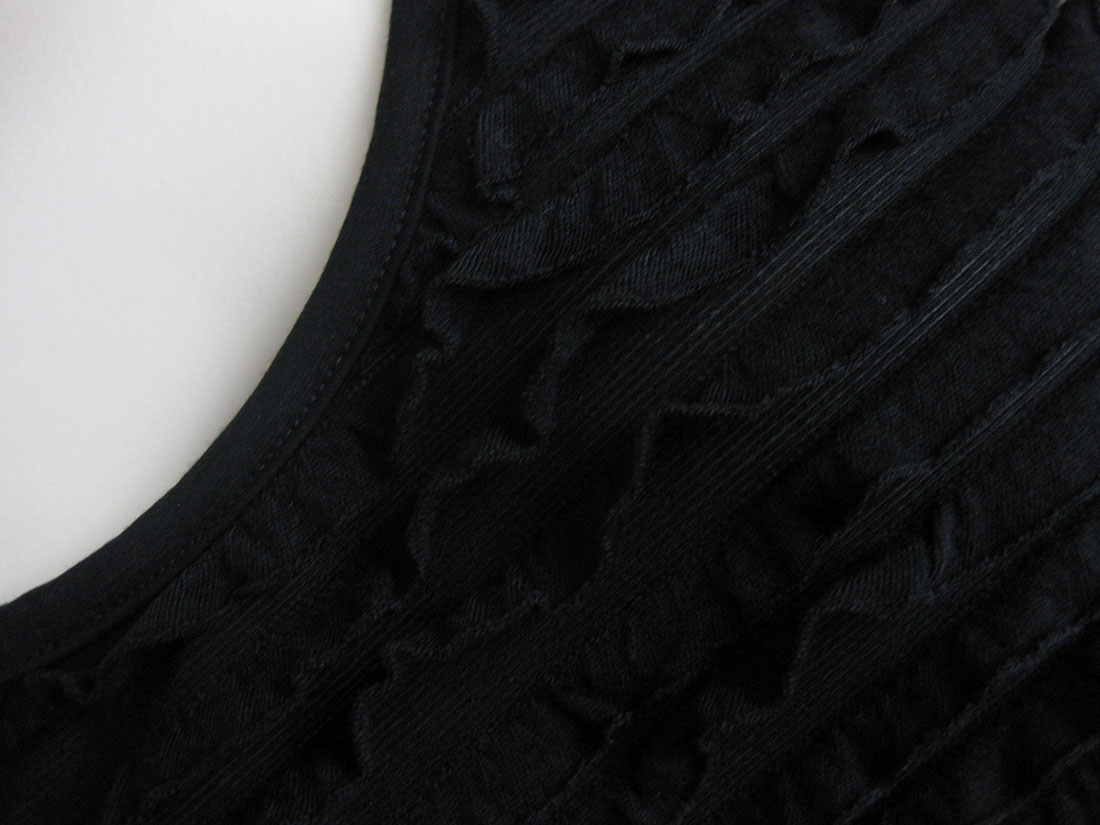 レーヨン混 総フリル ノースリーブワンピース ブラック M~L