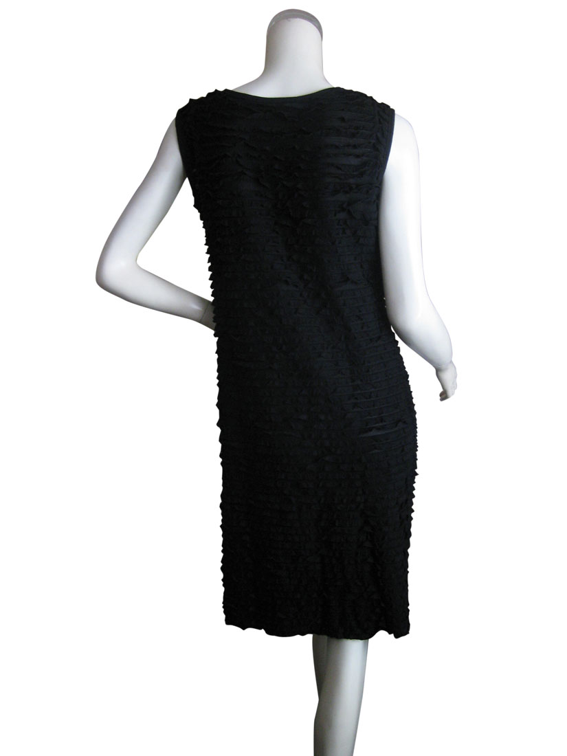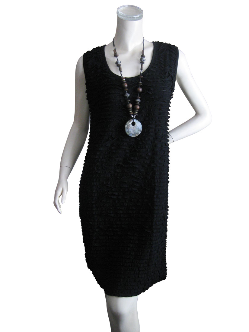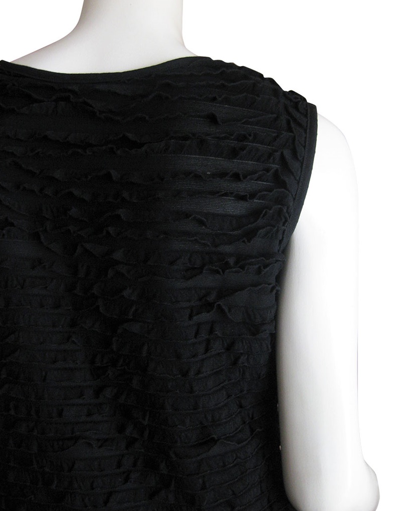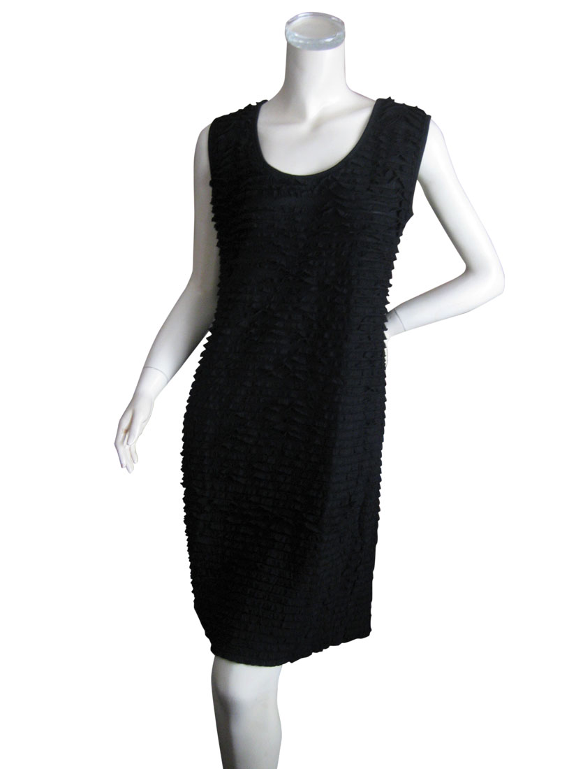 レーヨン混 総フリル ノースリーブワンピース ブラック M~L