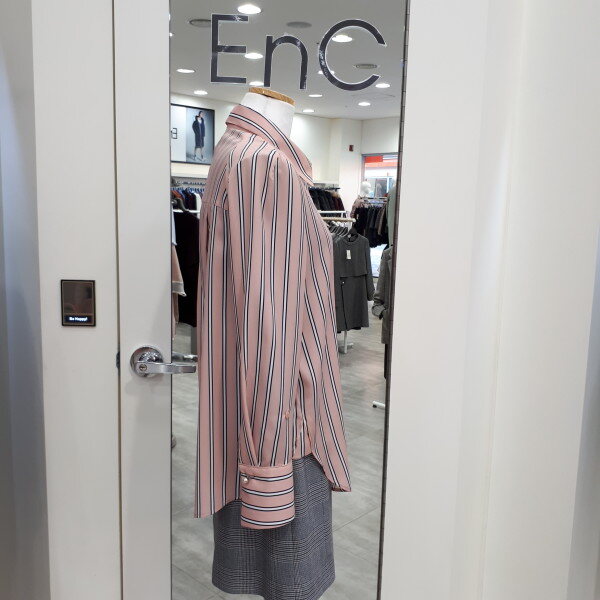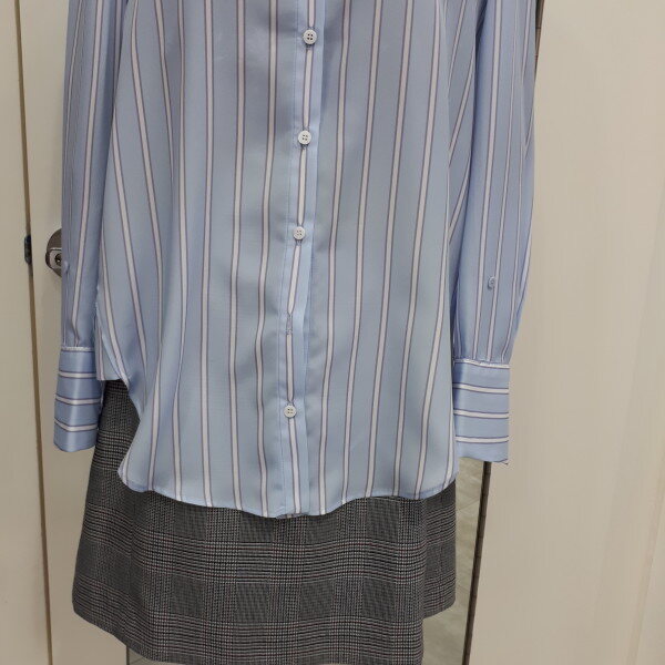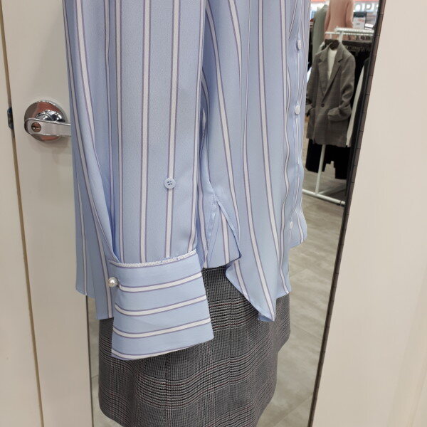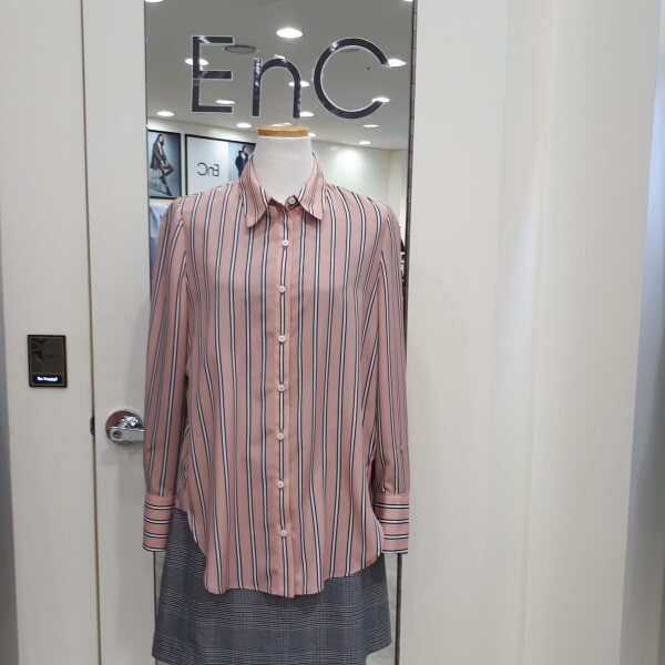 파스텔톤의 줄가라 블라우스느낌의 셔츠로 촉감이 아주 좋아요패턴이있어서 밋밋한 느낌도없고 깔끔한 자켓이나 코트에 입으셔도 포인트가됩니다