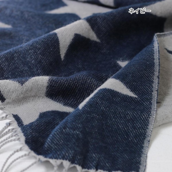 スターが印象的なショールです。表裏で反対色になっているので、巻き方によって雰囲気をアレンジできます。