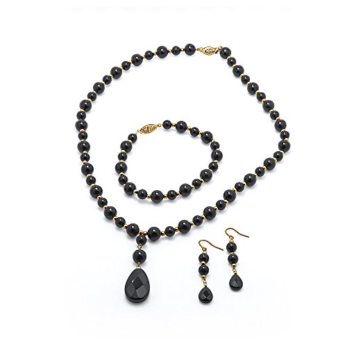 -. Title : 10k Gold Round Onyx Drop Earring, Bracelet and Necklace Set