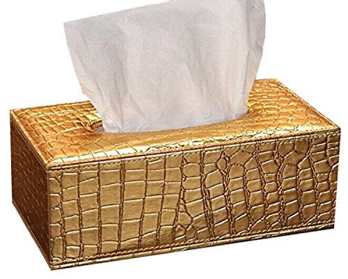 PU Leather Tissue Box Cover Paper Case Holder with Magnet Home Car Hotel Office Decor (Large, Gold Crocodile)