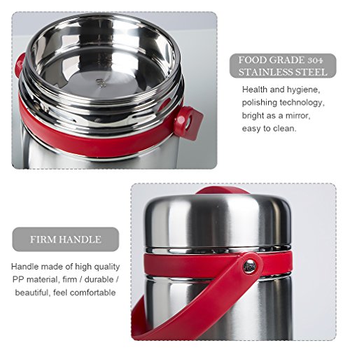 - ENJOY FRESH FOOD ANYWHERE:This Vacuum Insulated Lunch Contaier adopt Portable design with Arched handle,Easy to carry,When you have a hectic schedule, you need a food jar that can keep up!Whether in the office or outdoor picnic,park or beach camping,Hiking,fishing, student school lunch and so on,you can take a healthier, tastier Lunch,enjoy delicious food anywhere,Saves you money and time while Help your family eat well with balanced healthy food options.