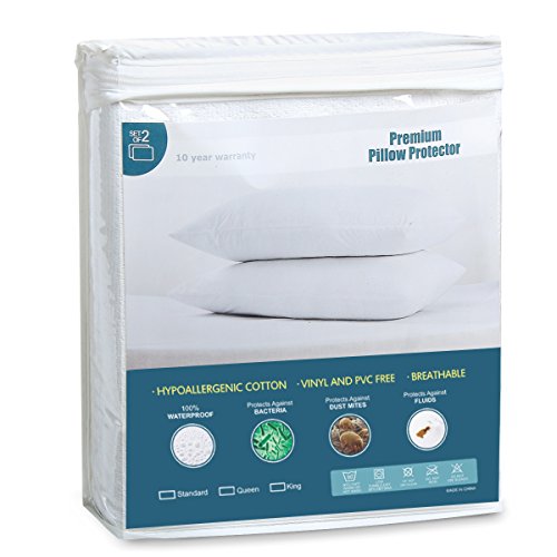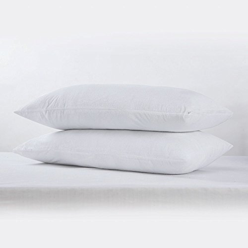 Set of 2 Standard Premium Cotton Terry Pillow Protector-Hypoallergenic, Waterproof, Bed Bug Proof Zippered Cover-Vinyl Free