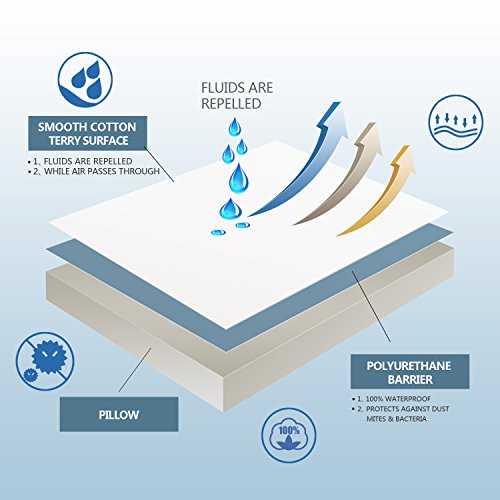 - Water Resistible and Breathable—100% Waterproof polyurethane membrane provides protection from perspiration, saliva, liquids and stains to keep your pillow safe