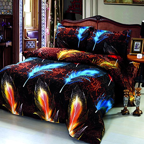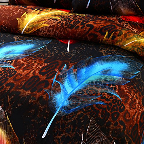 HOMDOX Bedding Sets with 1 Duvet Cover, 1 Flat Sheet and 2 Pillow Shams-100% Cotton-Hypoallergenic,Wrinkle and Fade Resistant- 3D Peacock Feather Pattern ,Queen Size