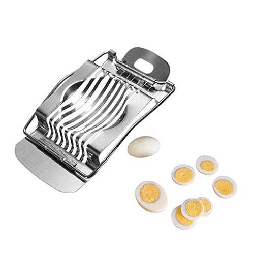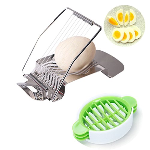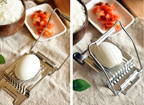- 2:>>ACCURATE AND PRACTICAL:Made of high-quality stainless steel wire cutter,tough and durable,sharp and easy to cut eggs.The free plastic boiled eggs cutter can cut eggs of three different shapes,bringing more fun to your food.
