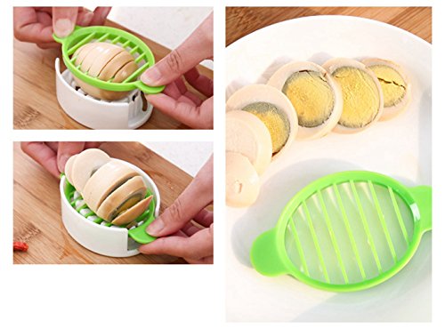 - 4:>>WIDE APPLICATIONS:This egg slicer is also used as a vegetable/fruit cutter except egg cutter,and treats various vegetables and fruits,such as strawberries,bananas,ham,tomatoes and more.The best choice for salad.