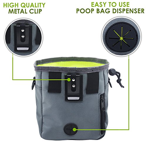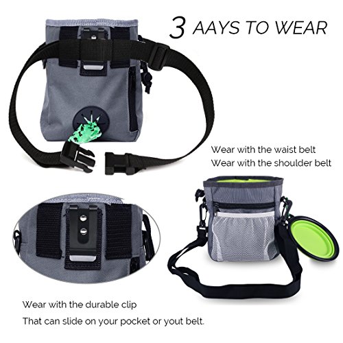 -. Title : Dog Treat Training Pouch – 3 Ways To Wear Built-in Poop Bag Dispenser Perfect Carries Pet Food, Toys, Treats