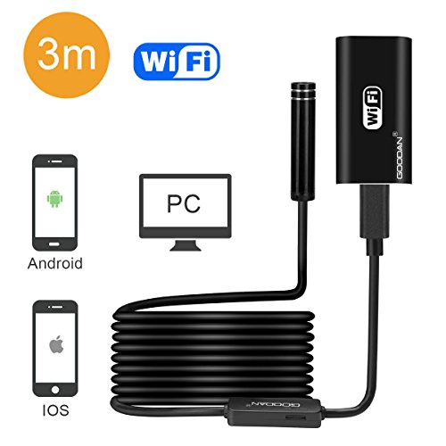 WIFI Endoscope camera, GOODAN wireless Borescope Inspection Camera with 2.0MP Lens HD Snake Camera with 8 adjustable LED Light for both Android and IOS Smartphone,iPhone,Samsung,Tablet,PC - Black(3 M)