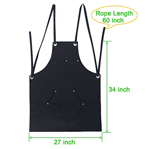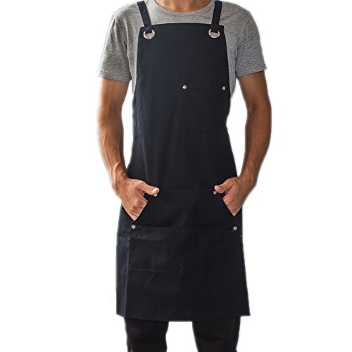 Benail Durable Heavy Work Apron Made From Heavy Duty Waxed Canvas With Adjustable Straps up to XXL for Men & Women and Pockets (Black)