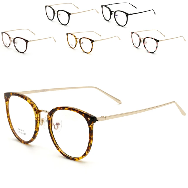| [해외] 새로운 브랜드 여성 안경 프레임 TR90 디옵터 컴퓨터 안경 남성 골드 라운드 블랙 프레임 |