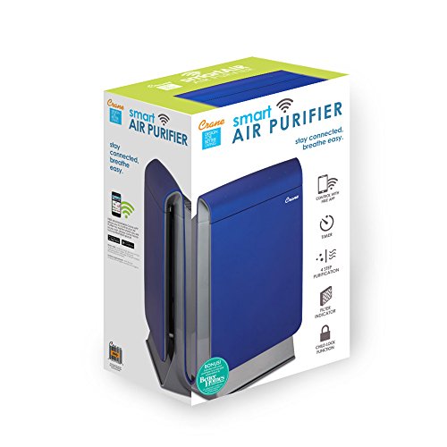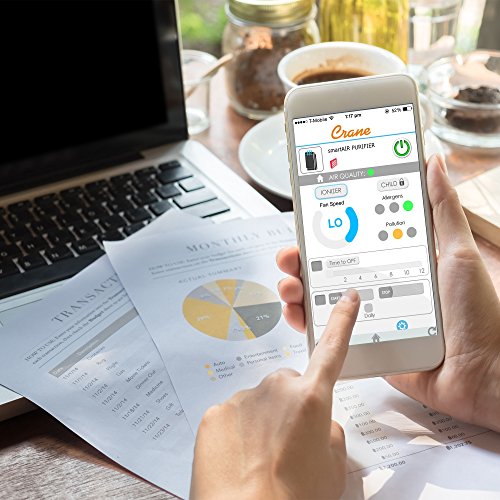 Crane USA Air Purifiers - Smart Wifi Air Purifier with True HEPA Carbon Filter Ionizer 3 speeds UV Sanitizer Captures Allergen Smoke Odors Mold Dust Germs Pets Smokers for home bedroom office kitchen