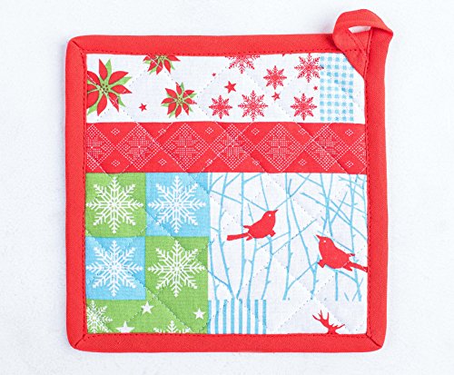 100% Cotton Pot Holder, 8 - inch by 8 - inch Holiday Collection by Thread Spread