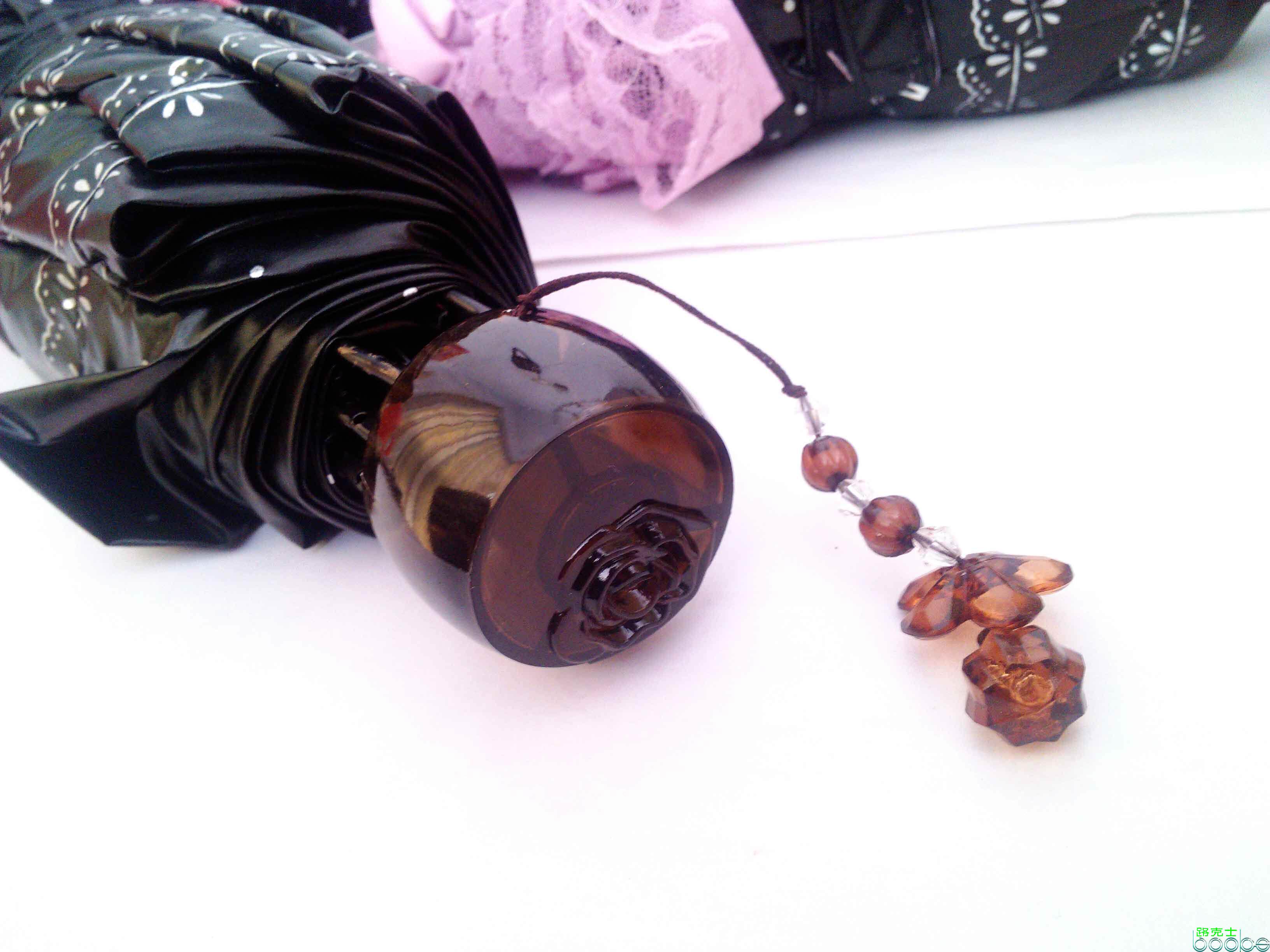 玫瑰伞柄带有精美吊坠,仿品则没有。请注意甄别哦。