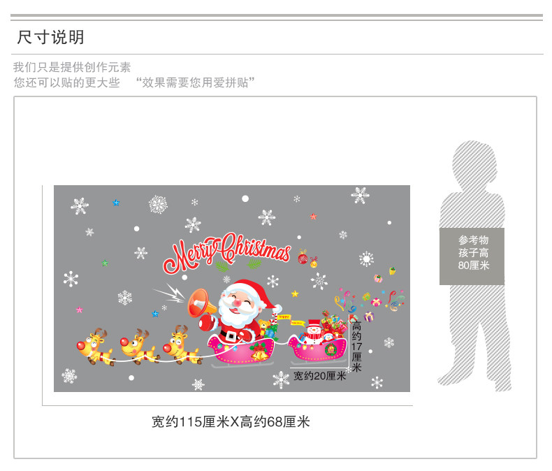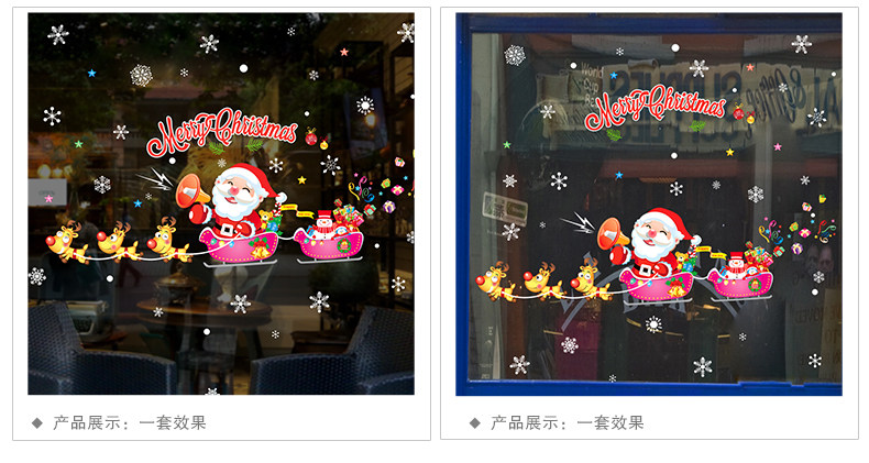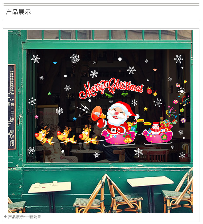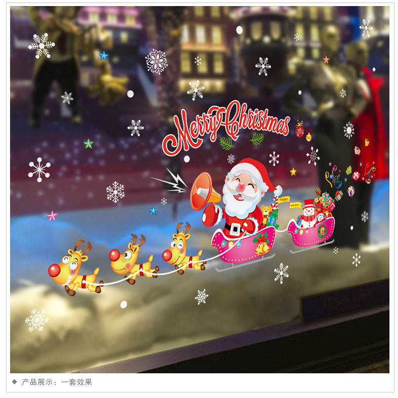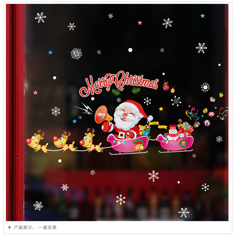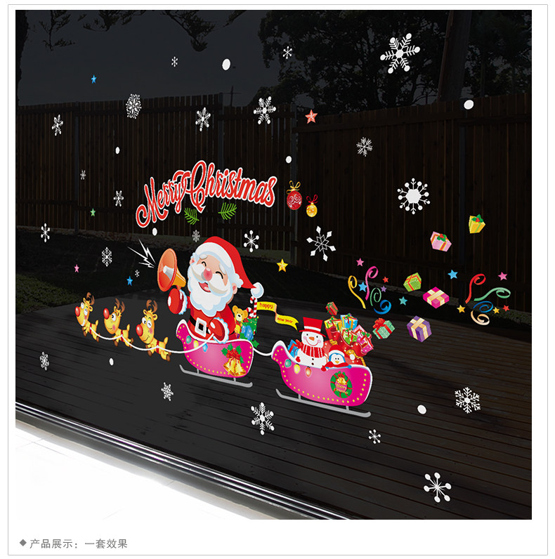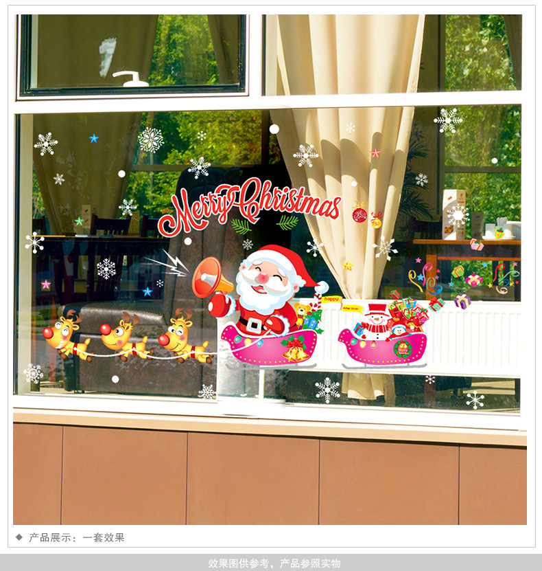 圣诞节装饰品节日气氛场景布置墙贴纸贴画自粘卡通圣诞老人雪橇车