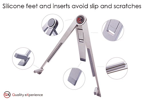 QX_holder. Metallic Multi-Angle Adjustable Foldable Universal Desk Stand Holder for iPad, iPhone, Tablet PC, E-books and Phones with FREE GIFT QX_cord - 2 IN 1 Apple and Android Retractable USB Cable