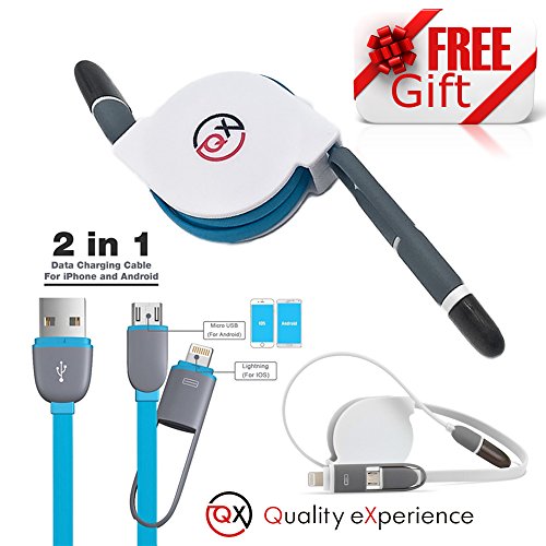 FREE GIFT - 3 Feet QX_cord - 2 IN 1 Apple and Android Retractable USB Cable. Connect the 8pin connector or micro USB 2.0 connector to your iOS or Android devices and connect the USB side into a wall charger adapter or USB hub to charger or your computer to sync data.
