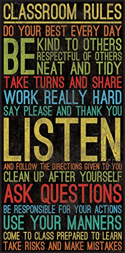 Classroom Rules Crackled Multicolor Teacher 8 x 19 inch Wood Wall Sign Plaque