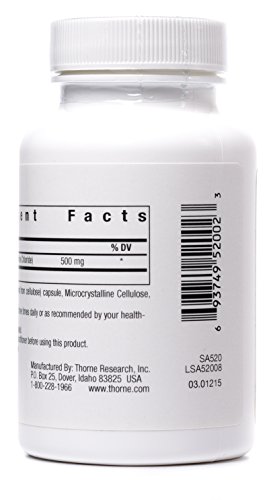 Thorne products contain ingredients from the purest sources worldwide. Flavors, colors, preservatives, and sweeteners derived from natural sources. Our products never contain gluten, Genetically Modified Organisms (known as GMOs), artificial preservatives, stearates, wheat, rye, barley, eggs, or nuts. This product does not contain dairy, soy, corn, yeast, sugar, or magnesium stearate.