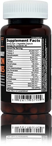 Advanced all natural Plant Based Enzyme formula, with Aspergillopepsin, Lipase, Protease, Bromelian, Amylase, Glucoamylase and Papain