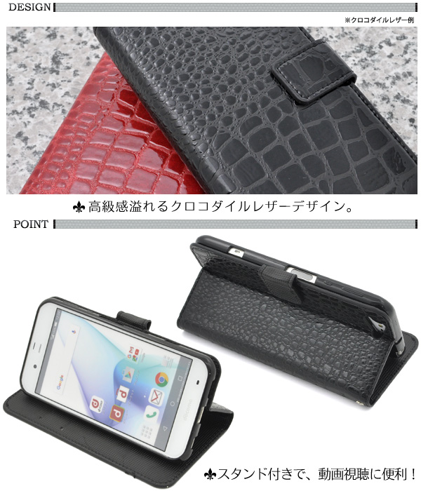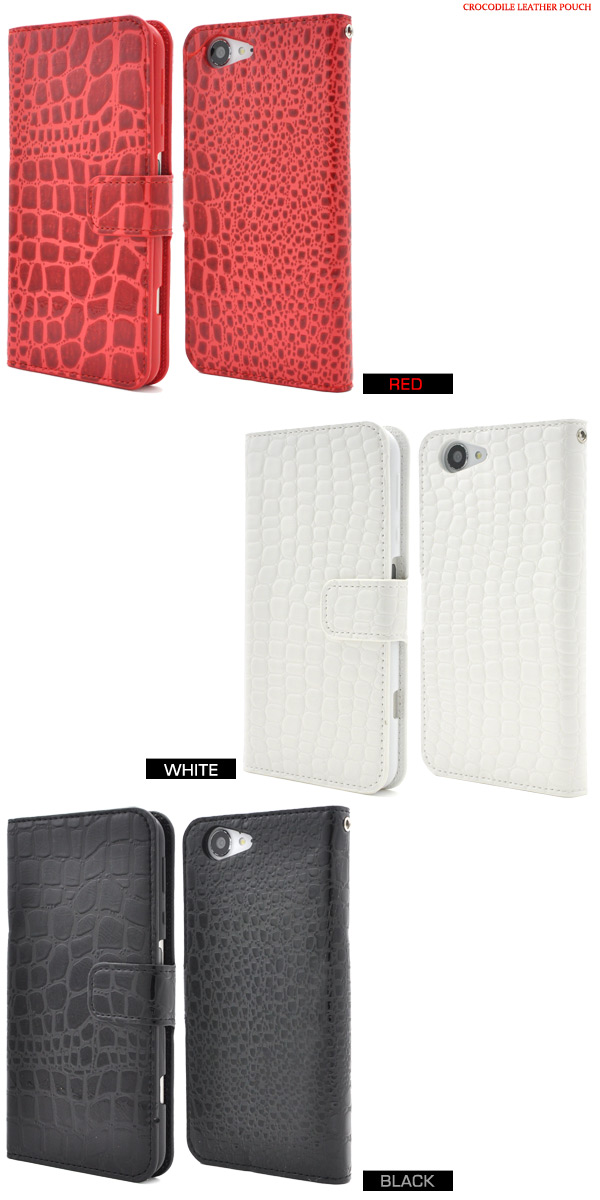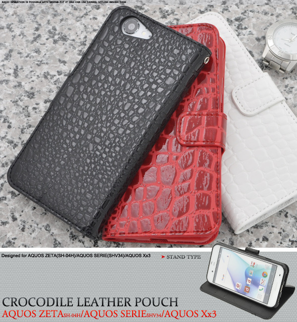 高級感溢れるクロコダイルレザーデザインのSH-04H/SHV34/AQUOS Xx3用スタンドケースポーチ。