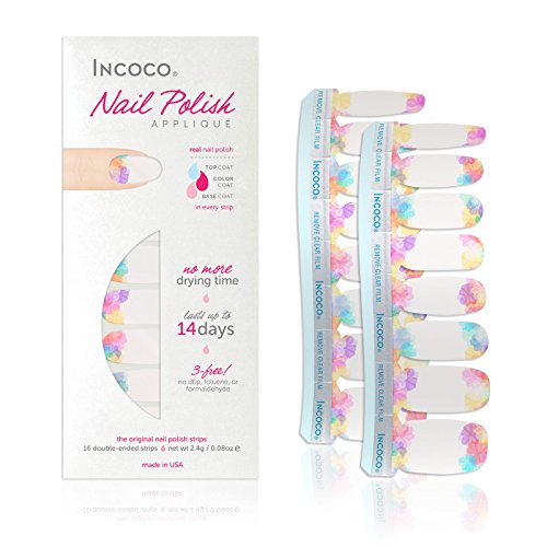 -. Binding : Misc. -. Brand : Incoco -. EAN : 0784179157061 -. Feature : Nail polish strips made with 100% real nail polish / No more dry time, smears or smudges / Remove with regular polish remover / Includes 2 sheets with 16 total strips in varying sizes to ensure a perfect fit / Made in USA -. IsAdultProduct : 0 -. Label : Incoco -. Manufacturer : Incoco -. MPN : EDF039 -. PackageQuantity : 1 -. PartNumber : EDF039 -. ProductGroup : Beauty -. ProductTypeName : BEAUTY -. Publisher : Incoco -. Studio : Incoco -. Title : Incoco Nail Polish Strips, Nail Art, Brilliant Burst -. UPC : 812650016962