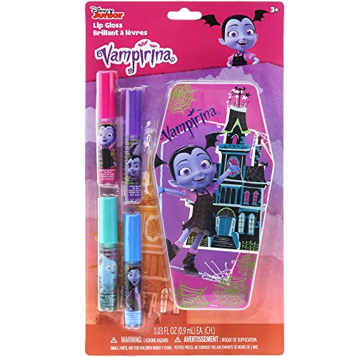 -. Binding : Health and Beauty -. Brand : TownleyGirl -. EAN : 0719565390470 -. Feature : Shimmer and Shine - This super cool lip gloss kit makes lips sparkle and shine, while hydrating and protecting. It is the perfect shimmery lip balm. / Favorite Characters - The tubes and tin are decorated with characters from the hit tv show Vampirina. Kids will have fun showing their friends this spunky lip gloss. / Pucker up with Yummy Flavors - Children will have a great time trying out all the amazing flavors! / Perfect First Makeup Set - This gloss is the perfect first beauty product. Children will love using the lip gloss and showing off their sparkles! / Ages 3 and Up - These lip gloss kits are recommended for children ages 3 and up. -. IsAdultProduct : 0 -. Label : TownleyGirl -. Manufacturer : TownleyGirl -. MPN : VP0002SA -. PartNumber : VP0002SA -. ProductGroup : Beauty -. ProductTypeName : BEAUTY -. Publisher : TownleyGirl -. Studio : TownleyGirl -. Title : TownleyGirl Vampirina Super Sparkly Lip Gloss Set for Girls, with 4 Fruity Flavors and Decorative Coffin Case -. UPC : 719565390470