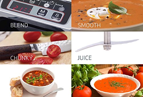 -. Feature : Perfect, Gourmet soup in under 30 Minutes / Multiple servings from each batch saving time in the kitchen / Easy to clean & store - / 4 Settings - Blend, Chunky, Smooth and Juice / 1.6L Capacity - Stainless Steel
