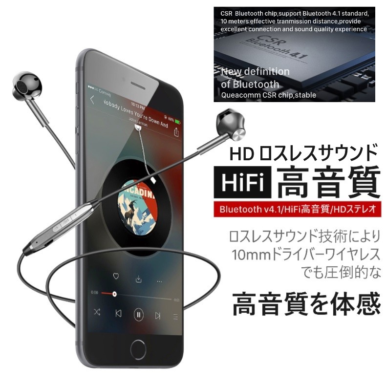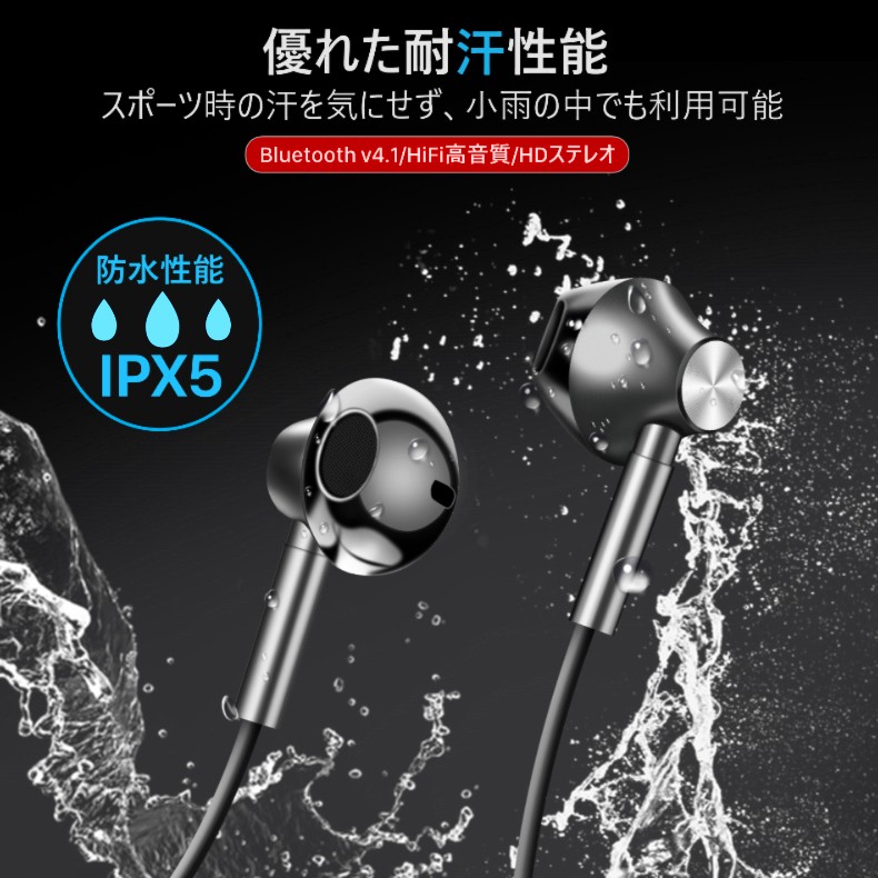 カラー: レッド グレー シルバー ローズゴールド 【Bluetooth v4.1対応】接続の安定性と優れた音質、低遅延を実現した「apt-X」コーデックに対応スマートフォン、タブレットなどのBluetooth対応デバイスと簡単かつ迅速にペアリングします。首元でスマートフォンなどのプレーヤーをかんたん操作。ケーブルに搭載されたコントローラを操作することで、Bluetooth接続しているスマートフォンなどの音楽再生機の曲送り/曲戻し、再生/一時停止、音量の調節が可能!マイク搭載で通話や音声アシスタントをご利用いただけます。【人体工学に基づいたデザイン】人体工学に基づいたフィット感のあるイヤー部と洗練されたアルミ筐体が鮮やかさを演出ジムやランニング等の運動時でもぴったりフィットして落ちません。安定した装着感で音楽に集中!・連続再生時間:約○時間・連続通話時間:約○時間・充電完了時間:約○時間・電波最大到達距離:約○m ※遮蔽物がない場合に限ります・microUSBケーブル付属・日本語説明書付属