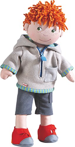 - Fabian stands 13.5" tall and wears a hooded jacket with a zipper, pants and sports shoes. He can wear any outfit from the HABA 12-13.5" fashion collection.