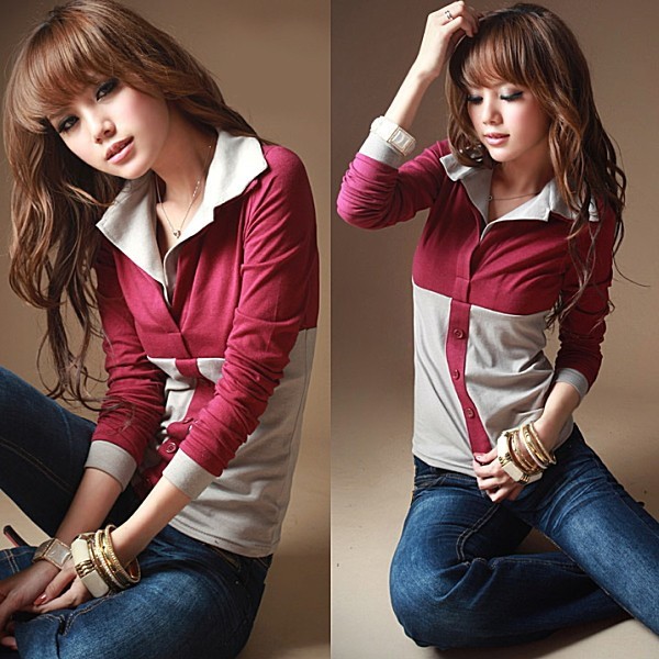 | 商品名 | バイカラー切替 襟付き 長袖スリムTシャツ ポロシャツ カットソー |