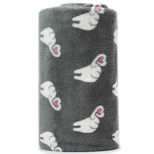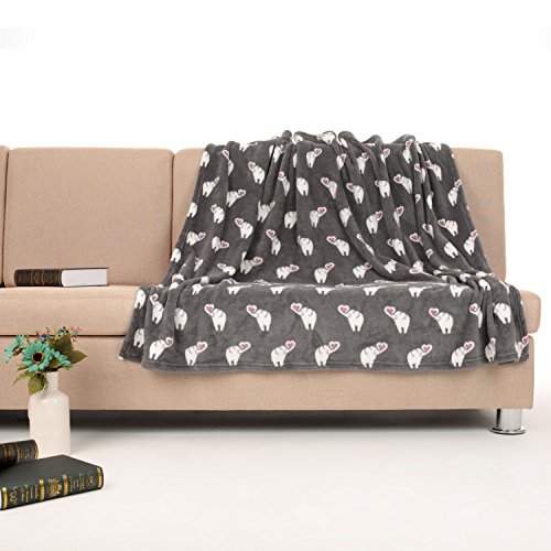 Stay warm with Cosmoz's new Lucky Elephant fleece blanket. This super soft multipurpose throw blanket will enhance your home decor and is suitable for all seasons. Dark Grey color with White Elephants inhanced with a inner Pink Heart pattern. This dreaming Elephant fleece blanket can be used as a throw for your living room sofa, bedding or will make a great gift.