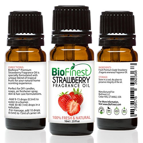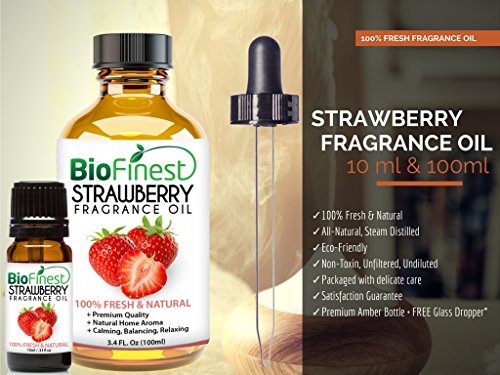 BioFinest Strawberry Fragrance Oil - 100% Pure & Natural - Fresh Home Scent - Air Refresher - Relaxing Aromatherapy - Skin and Hair Care - FREE E-Book (10ml)