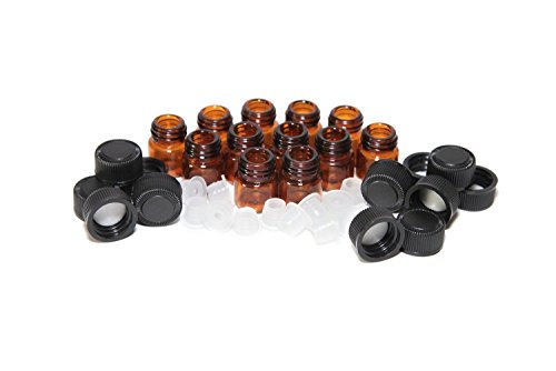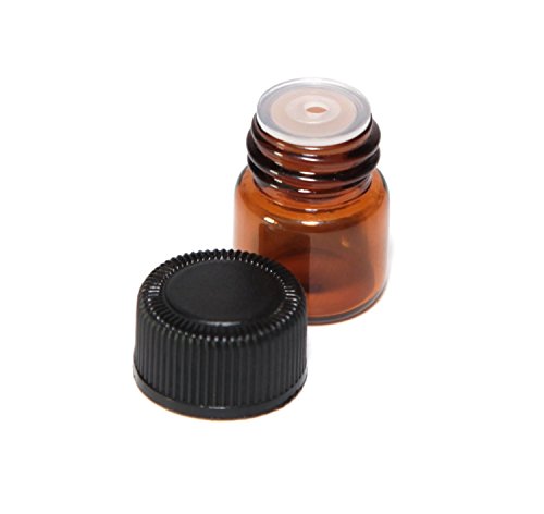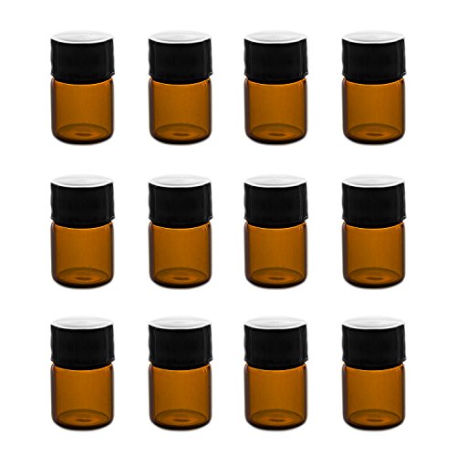 1ml (1/4 dram) Mini Amber Glass Vial Bottles with Orifice Reducer and Cap for Essential Oils, Chemistry Lab Chemicals, Colognes & Perfumes (12 Pack)